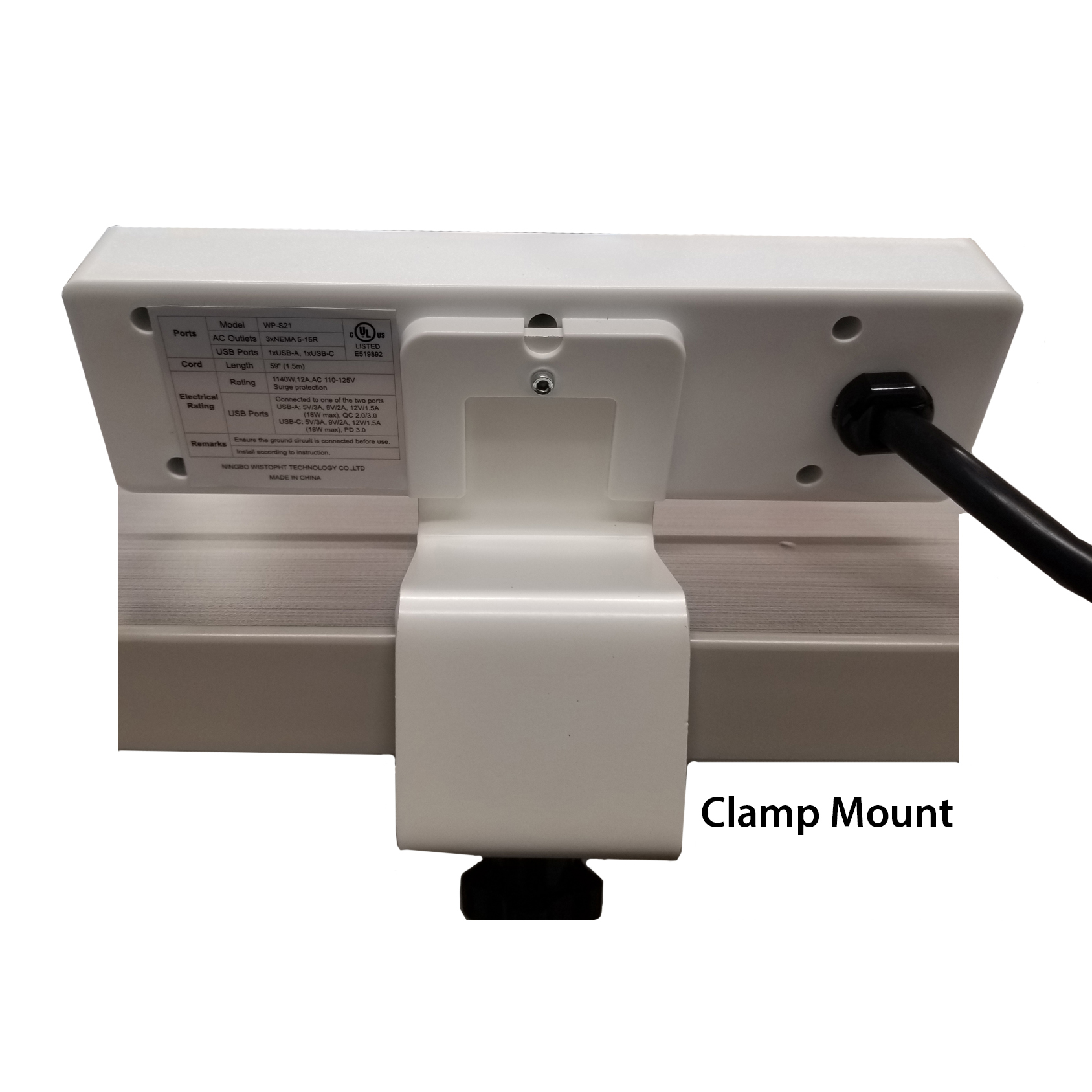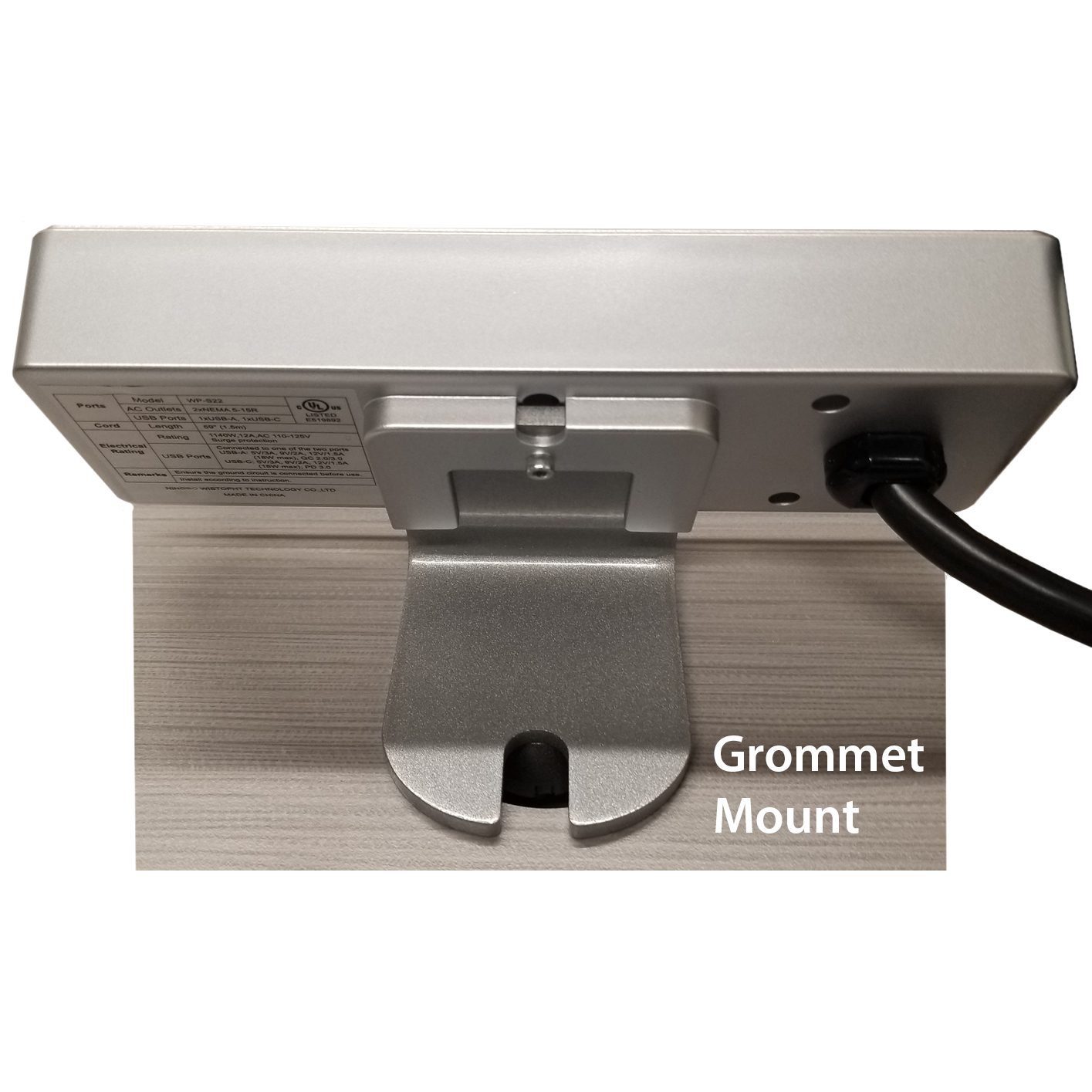 OFDTP311- Grommet or Clamp Mount Desk Power Block with 3 Outlets, 1 USB-A Port, and 1 USB-C Port